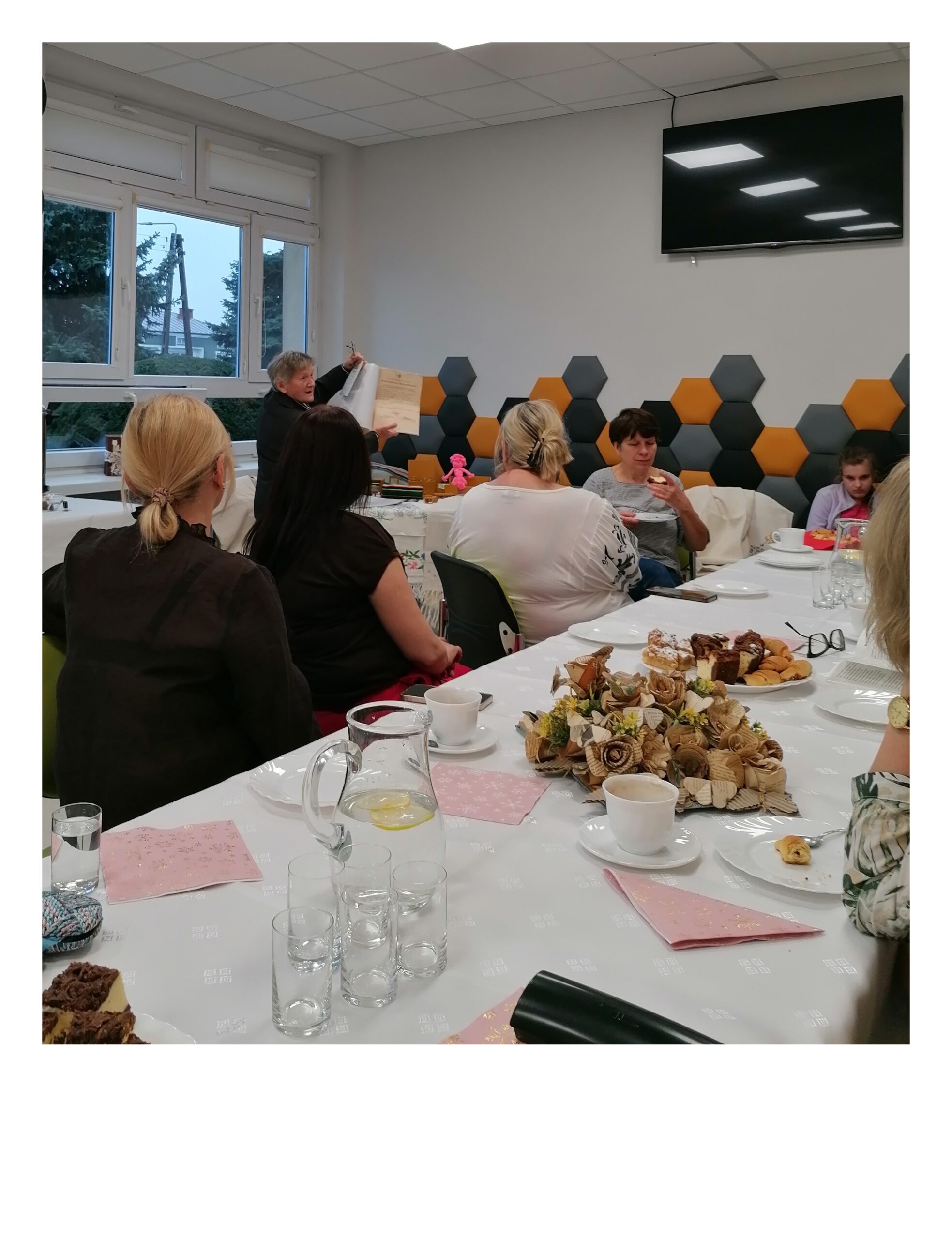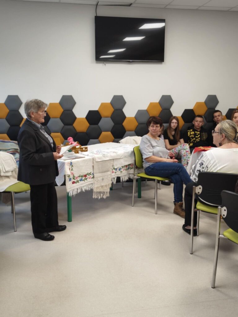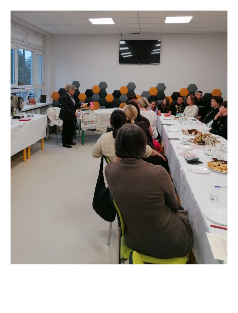 Spotkanie rozpoczęło się uroczystym wręczeniem publikacji pani Jadwidze Krześniak. Następnie Agnieszka Karwowska zaprezentowała książkę zgromadzonym nauczycielom bibliotekarzom oraz uczniom z SOSW w Przyłęku, którzy przybyli wraz z opiekunem Agnieszką Gałkowską. Publikacja stanowi rekonstrukcję dawnych obrzędów i rytuałów, będących integralną częścią życia mieszkańców polskiej wsi. Była to okazja do wspólnej refleksji nad tym, jak jesienne zwyczaje kształtowały rytm codzienności, budowały więzi społeczne i podtrzymywały kulturę duchową naszych przodków.