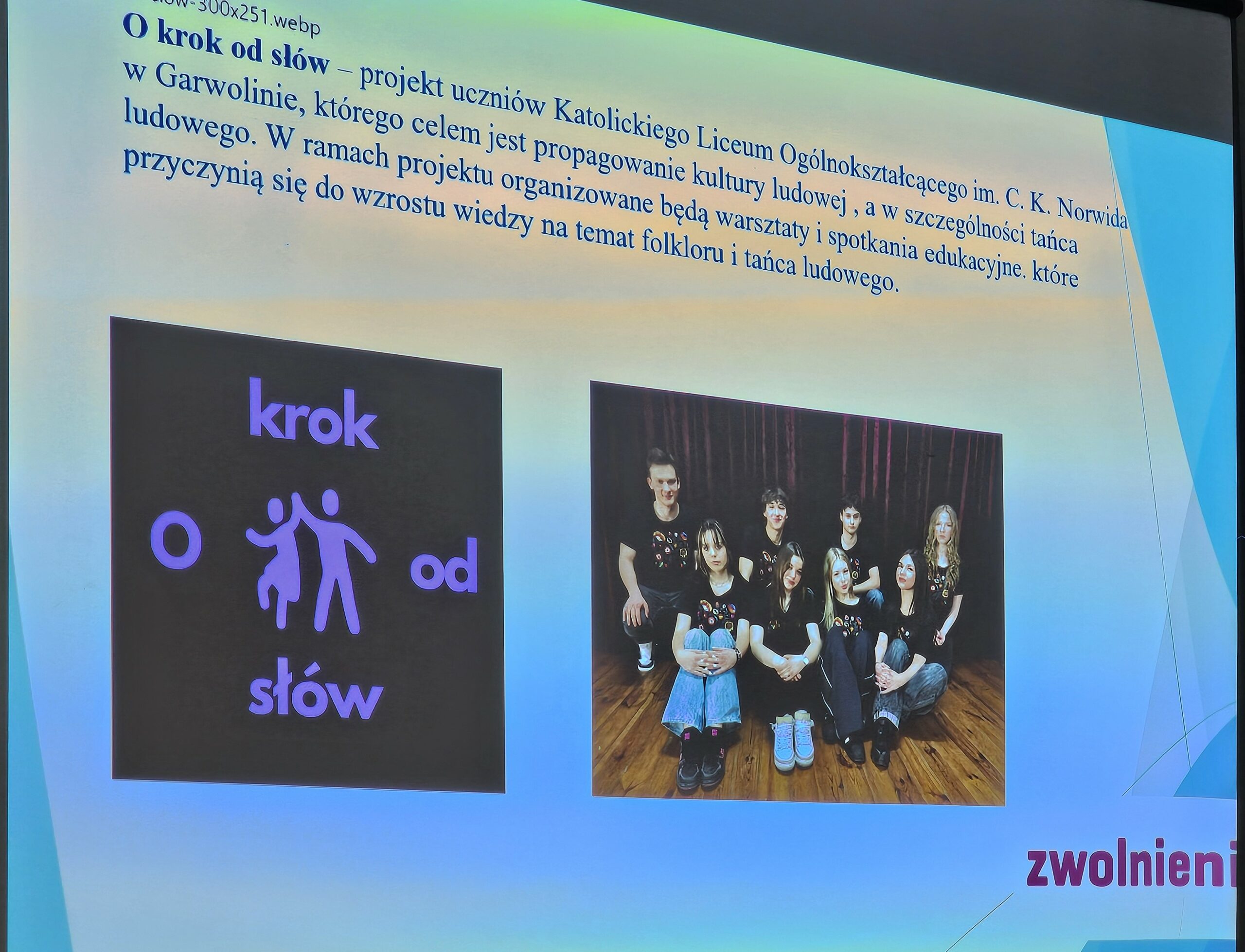 - O krok od słów – propagowanie kultury ludowej i tańca ludowego poprzez warsztaty i spotkania edukacyjne.