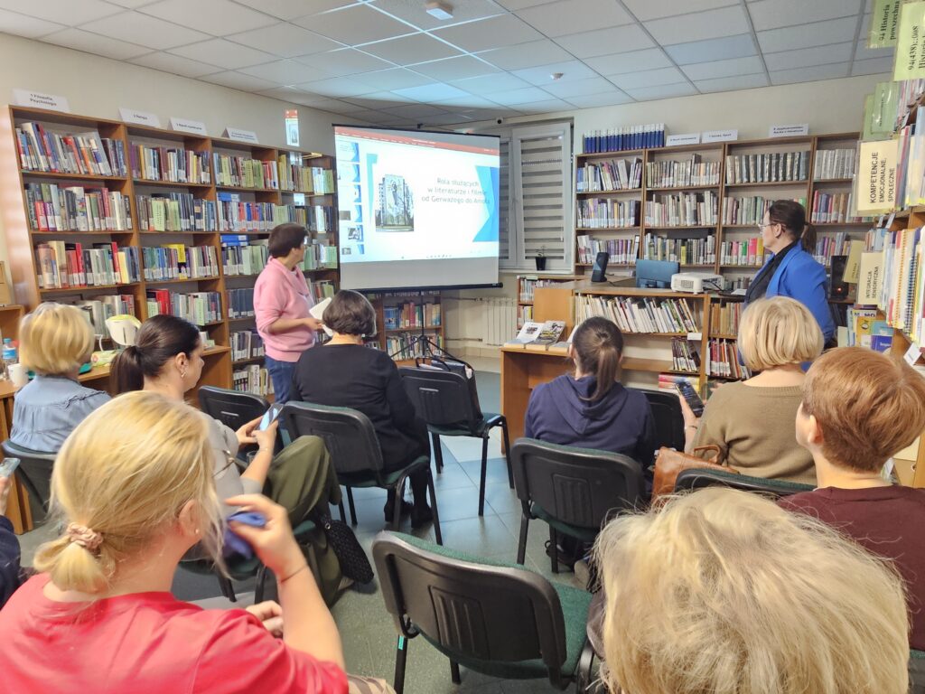 11 marca 2026 r. w Bibliotece Pedagogicznej im. Heleny Radlińskiej, Filia w Garwolinie, odbyła się Konferencja Bibliotekarzy Powiatu Garwolińskiego. W pierwszej części wystąpienia Agnieszka Karwowska wygłosiła referat pt. „Rola służących w literaturze i filmie – od Gerwazego do Anioła”. W swoim wykładzie zwróciła uwagę, że postaci służących w literaturze i filmie odzwierciedlają zmieniające się relacje społeczne, hierarchie oraz kwestie władzy i lojalności w różnych epokach. Podkreśliła, że analiza takich bohaterów pozwala lepiej zrozumieć kontekst historyczny i kulturowy dzieł, rozwija świadomość społeczną oraz krytyczne myślenie. Na konferencję przygotowano także materiały informacyjne w postaci ulotek oraz wystawkę pt. „Pracownicy domowi w Katalogu Biblioteki Pedagogicznej w Garwolinie”, przygotowaną przez Joannę Rosek, która prezentowała zasoby biblioteki pedagogicznej związane z tematyką referatu. W drugiej części wystąpienia Agnieszka Karwowska przedstawiła projekty realizowane przez młodzież w ramach Ogólnopolskiej Olimpiady „Zwolnieni z Teorii”, podkreślając ich ogromne znaczenie w edukacji. Projekty te nie tylko uczą współpracy i odpowiedzialności, ale pozwalają młodym ludziom na praktyczne działanie i rozwijanie własnych inicjatyw społecznych. Wystąpienie stało się także punktem wyjścia do dyskusji z uczestnikami spotkania na temat roli dorosłych we wspieraniu młodzieży w projektach edukacyjnych i społecznych.