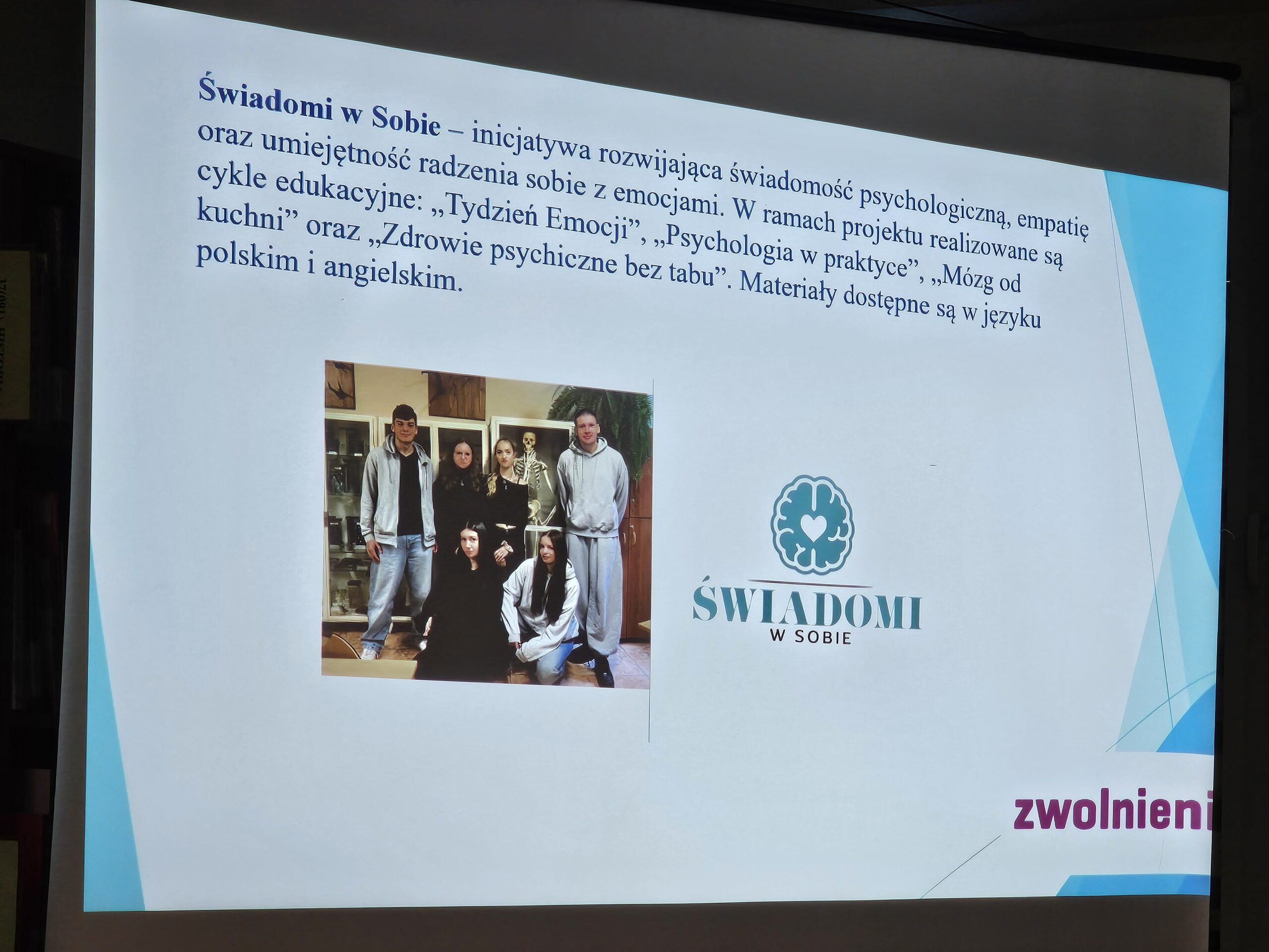 - Świadomi w Sobie – rozwijanie świadomości psychologicznej, empatii i umiejętności radzenia sobie z emocjami poprzez cykle edukacyjne: „Tydzień Emocji”, „Psychologia w praktyce”, „Mózg od kuchni”, „Zdrowie psychiczne bez tabu”. Materiały dostępne w języku polskim i angielskim.